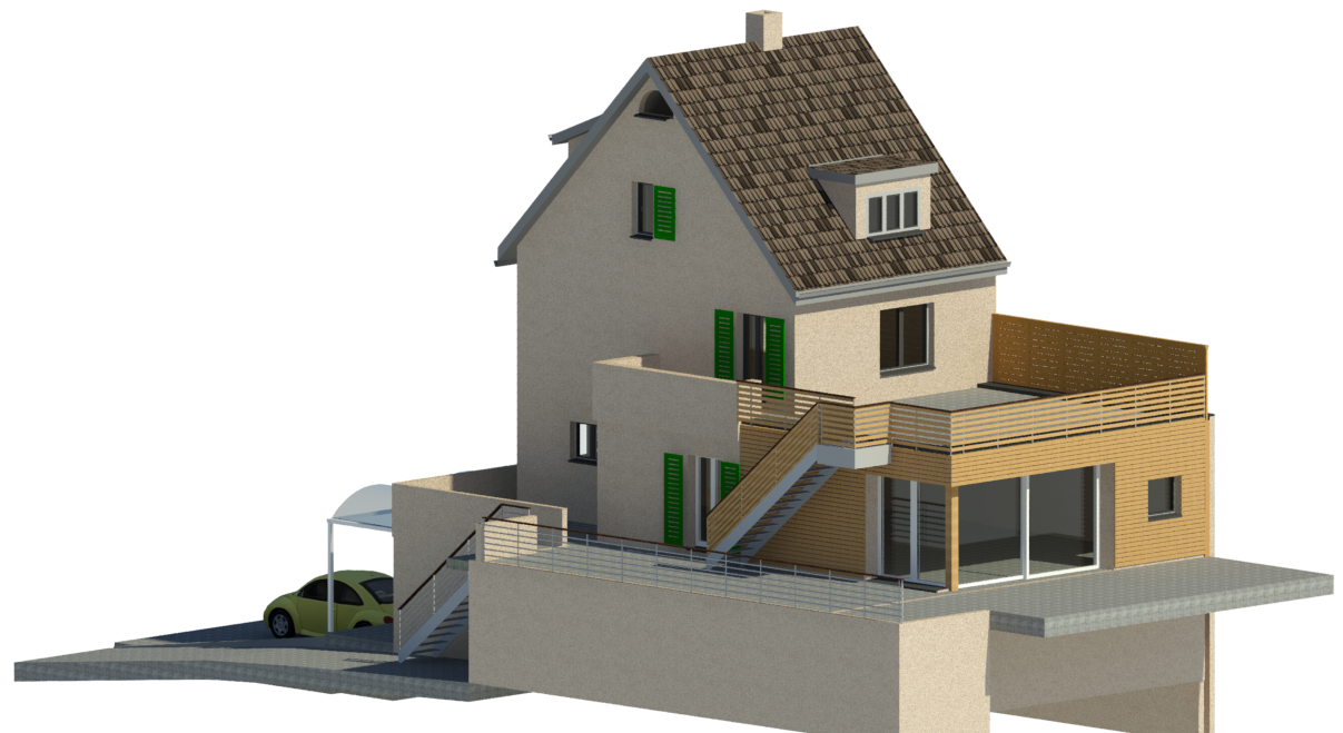 Für dieses Einfamilienhaus sind diverse Projekte vorgesehen und wurden mit dem 3D Laserscanner aufgenommen, damit millimetergenau geplant werden konnte.